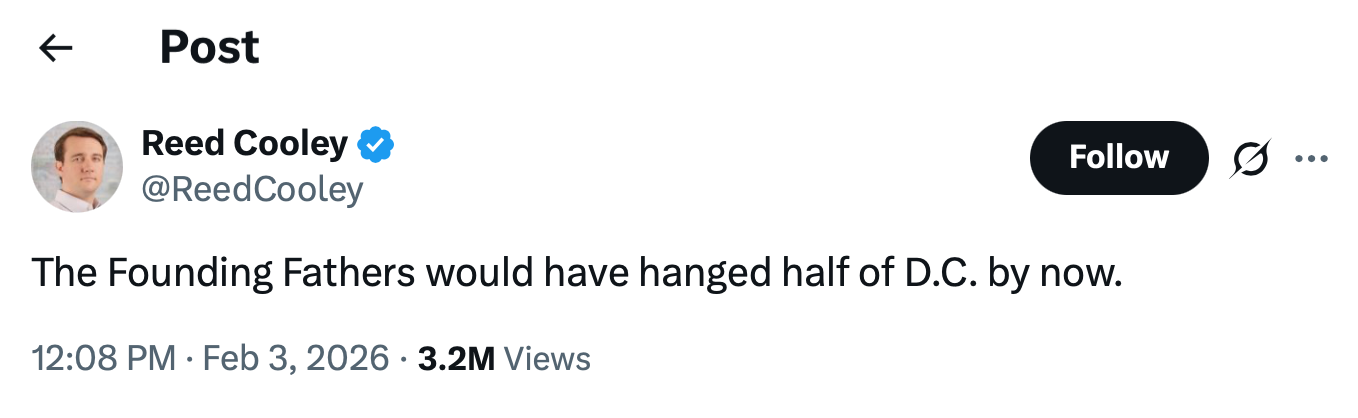 As one commentator on X remarked, comparing these times with the founding of the Republic - “the founding fathers would have hanged half of DC by now.”